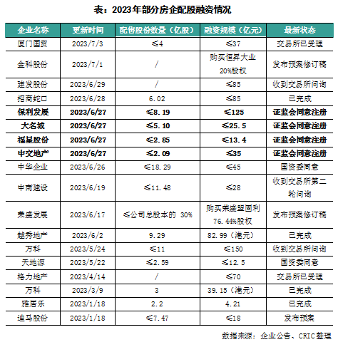 克而瑞研究中心认为,整体看来6月交易所及证监会对于房企的增发计划审批明显加速,有利于提振市场信心。