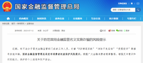 近期市场上“李鬼”横行,多家国央企发声打假。国家金融监督管理总局也出手了!7月12日上午,国家金融监督管理总局发布关于防范冒用金融监管名义实施诈骗的风险提示,提醒广大金融消费者提高警惕,增强反诈意识和识别能力。