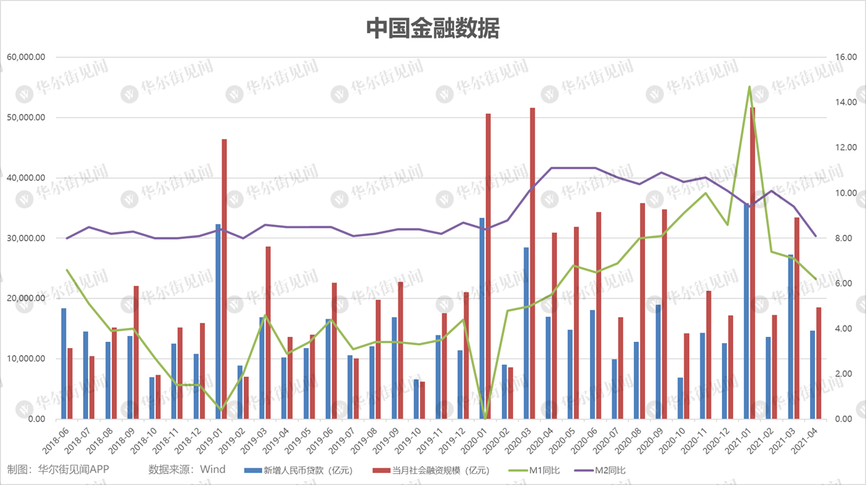 根据中国央行初步统计,2021年4月社会融资规模增量为1.85万亿元,比上年同期少1.25万亿元,比2019年同期多1797亿元。此前,机构对4月新增社融规模的预计值为2.622万亿元。