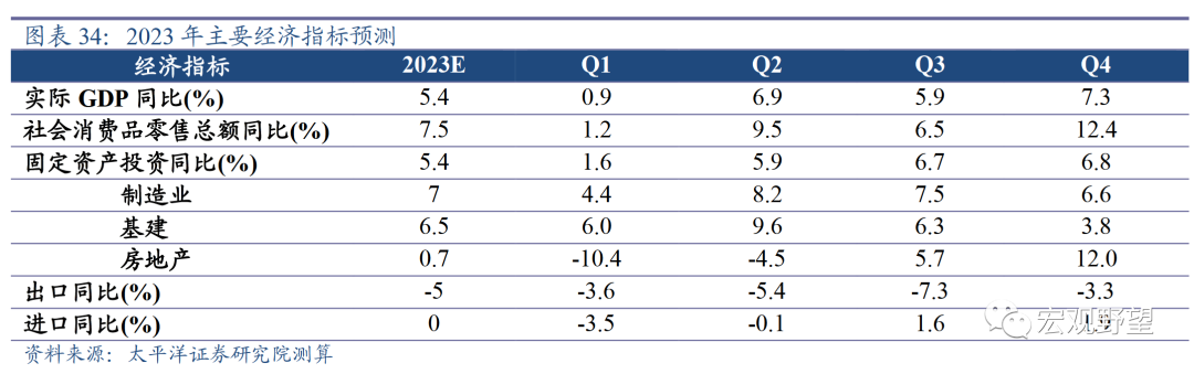 3.1. 从外需转向内需我们预计2023年中国实际GDP增速为5.4%。同比增速为“N”型走势,二季度由于基数原因会有阶段性冲高。从经济景气度来看,全年经济是逐步复苏的,前低后高。