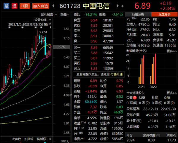 此前,中国电信也表示,公司高度重视股东回报,积极履行利润分配承诺,自2022年起宣派中期股息,并将在A股发行上市后三年内,逐步将每年以现金方式分配的利润提升至当年本公司股东应占利润的70%以上,不断为广大股东创造价值。