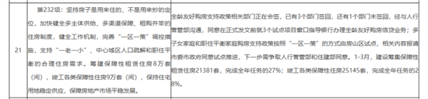 对于上述任务的进展情况,北京市住建委表示,全龄友好购房支持政策相关部门正在会签,已有3个部门签回,还有1个部门未签回,经与人行营管部沟通,同意在正式发文前就3个试点项目窗口指导银行办理全龄友好购房信贷业务;多子女家庭和职住平衡家庭购房支持政策按照“一区一策”的方式由房山区试点,相关内容报请市委市政府同意试点推进,下一步需争取人行营管部和住建部同意。