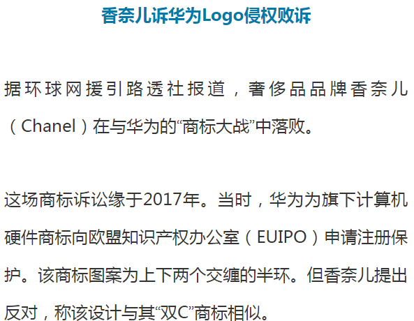 (原标题:冲上热搜第一!香奈儿诉华为Logo侵权败诉!网友:字母C得起诉字母U了)