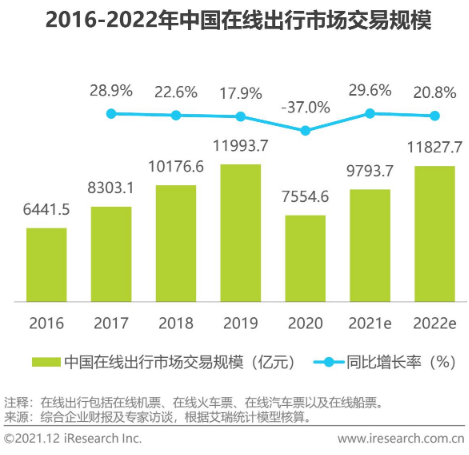 旅游行业是受疫情影响最为严重的行业之一,随着国内疫情的逐渐稳定,2021年在线旅游行业开始复苏,逐渐实现了恢复性增长。