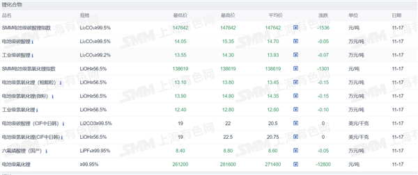 1.锂化合物现货价格
