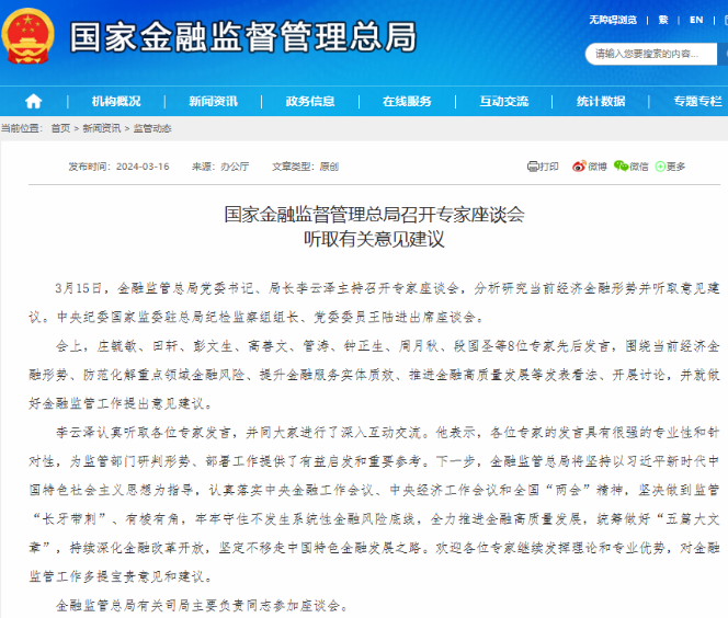 国家金融监督管理总局召开专家座谈会听取有关意见建议