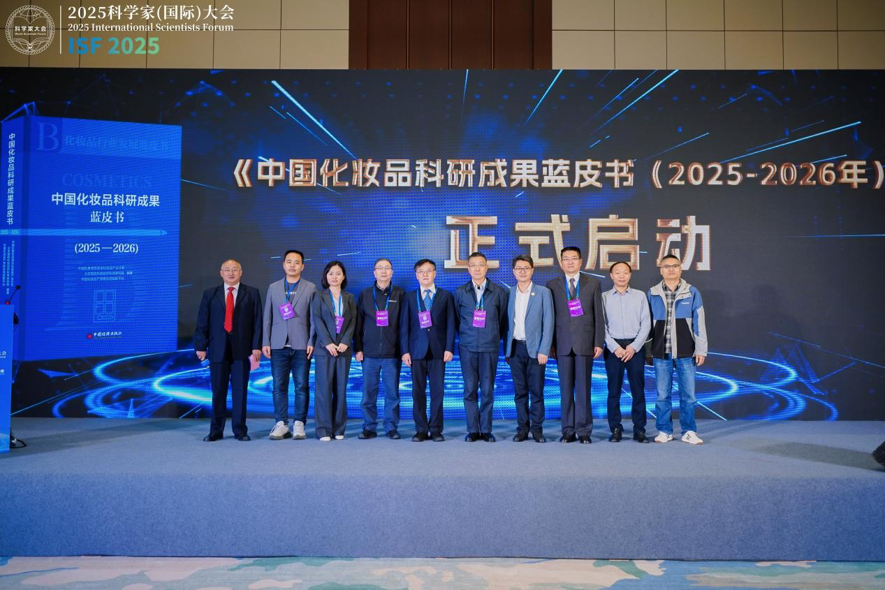 ??图为《中国化妆品科研成果蓝皮书(2025-2026年)》启动仪式现场。