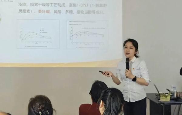 分公司讲师李哲锋深度剖析了新产品络棠桑叶青钱柳冲调粉的功效与作用机理,为新品上市做好预热工作。
