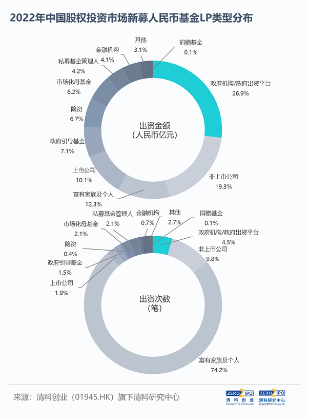 尽管如此,但过去十年,风投行业不乏“掘金”的故事,这对富豪家族们有着极高的吸引力。清科研究中心数据显示,2022年人民币基金募资中,“富有家族及个人”是活跃度最高的三大类LP之一,参与认缴出资次数累计超4.2万笔。