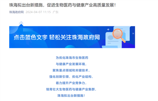 与此同时,广州、珠海两地也发布了促进鼓励生物医药产业高质量发展相关政策。