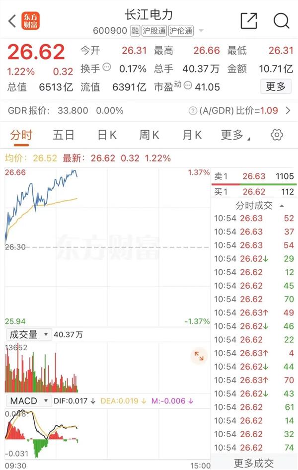 今天早盘,长江电力拿下历史新高,股价达到26.66元。
