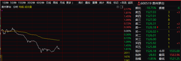 受此影响,今天贵州茅台的股价亦是加速杀跌,跌幅一度超过2%。