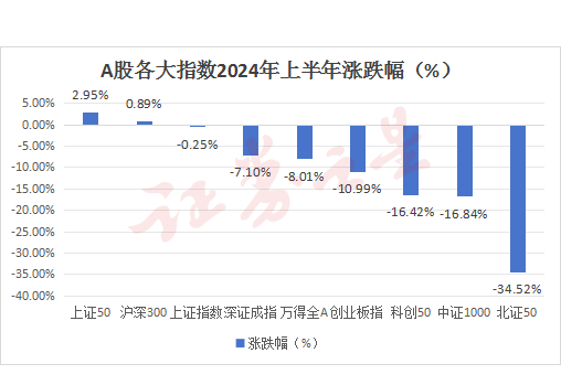 2024年上半年,A股市场经历了一段复杂多变的行情,展现出“一半海水一半火焰”的鲜明特征。主要指数的表现分化显著,既有稳健上涨的红利指数和蓝筹股指数,也有大幅下跌的成长股指数和中小盘指数,市场风格差异明显。
