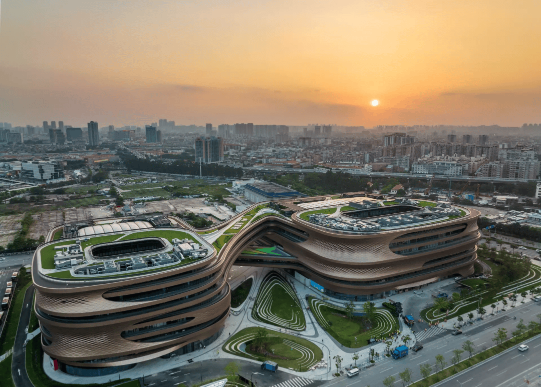 广州的无限极广场是无限极中国的总部,由扎哈·哈迪德建筑事务所(Zaha Hadid Architects)在2016年至2021年设计建造。这座超过18.5万平方米的城市综合体,以其创新的工作空间设计方法脱颖而出,将办公、科研、教育和零售功能结合在一个可持续的综合体中。该建筑位于前白云机场所在地,新中央商务区的核心,不仅支持商务办公,还为现代城市区域规划奠定了基础。
