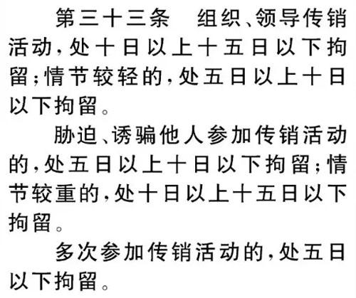 组织、领导传销活动的,处十日以上十五日以下拘留;情节较轻的,处五日以上十日以下拘留;