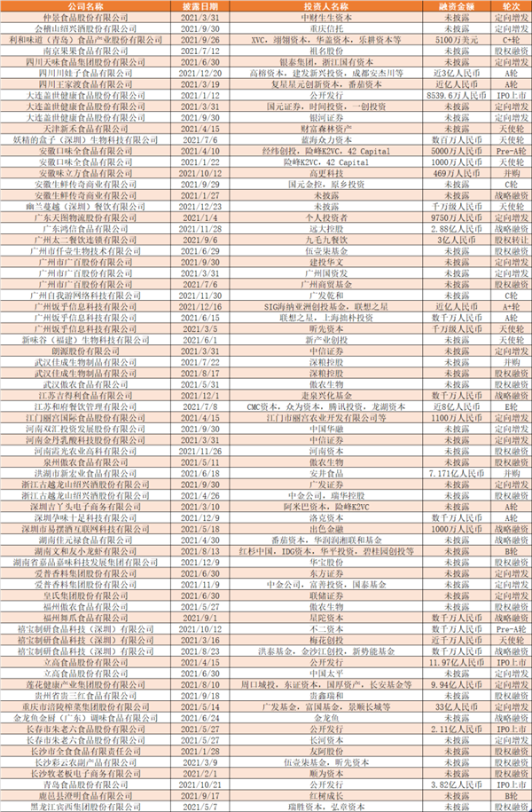 天眼查数据显示,2021年调味品相关企业的融资超过70次。