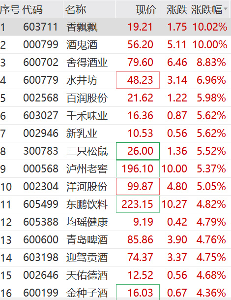 白酒股集体飘红