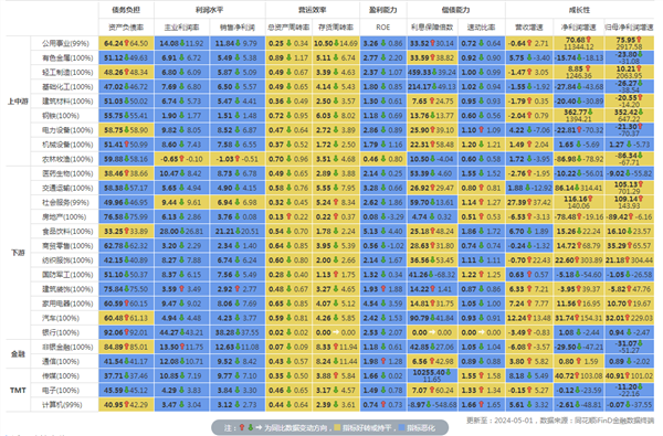 行业财务指标同比变动
